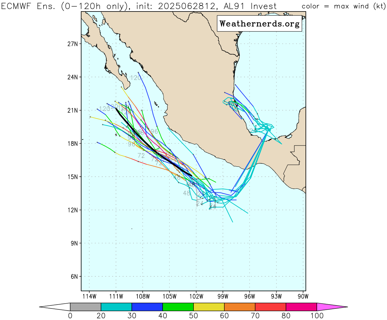 NOTE on ECMWF Ensembles: These data are plotted directly as provided to the public by the ECMWF.